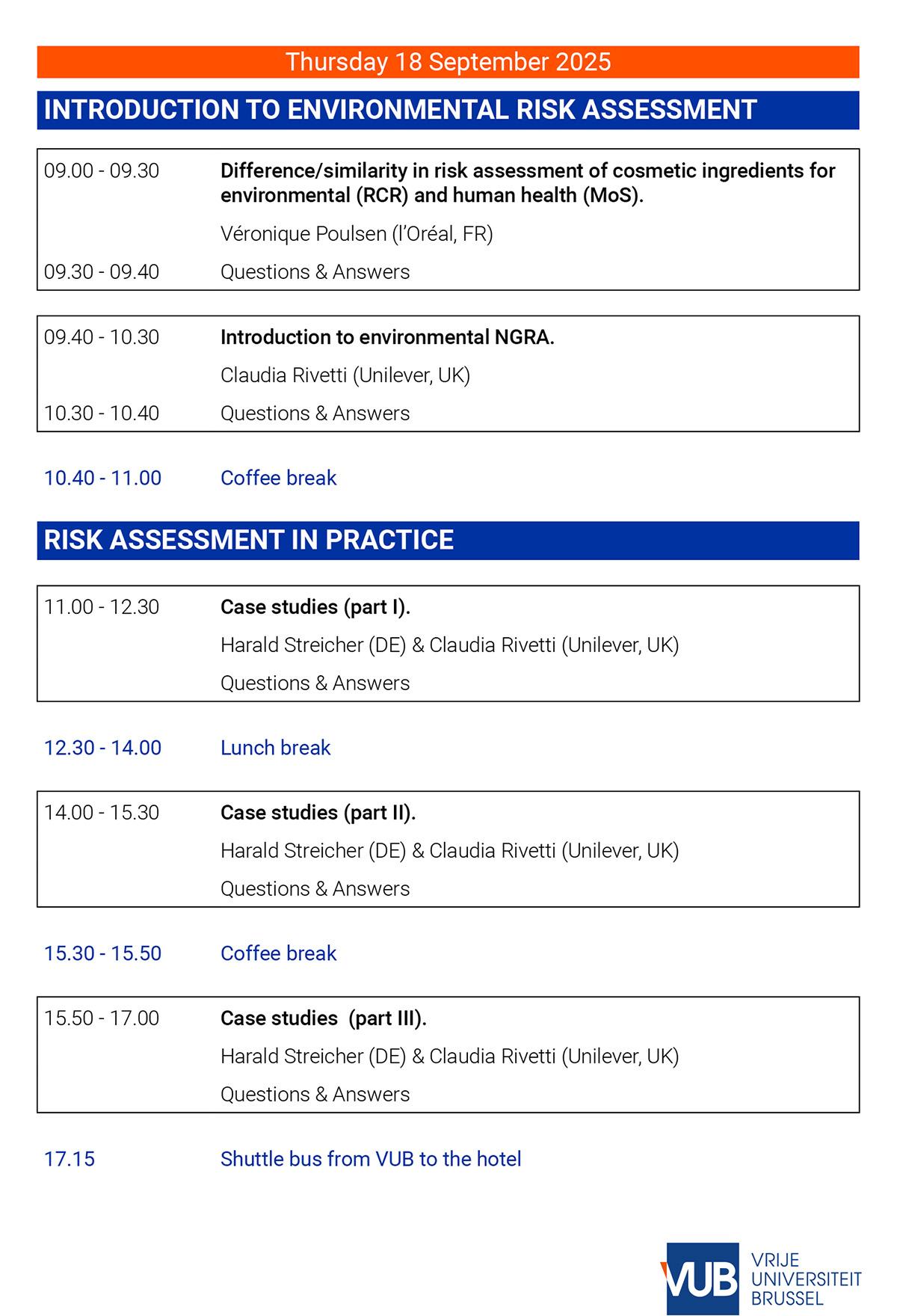 The Environmental Safety Training Course will be held 16-19 September 2025 at the Vrije Universiteit Brussel, Health Campus Jette, Laarbeeklaan 103, 1090 Brussels, Belgium.
